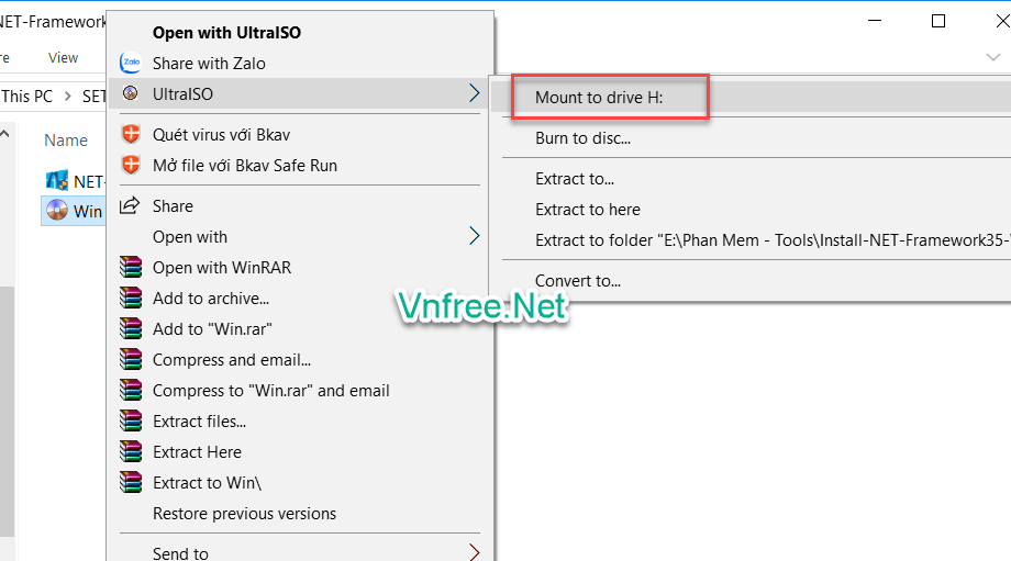 Win.iso ra ổ đĩa ảo. Bạn nhớ tên ổ đĩa ảo nhé, ở đây mình