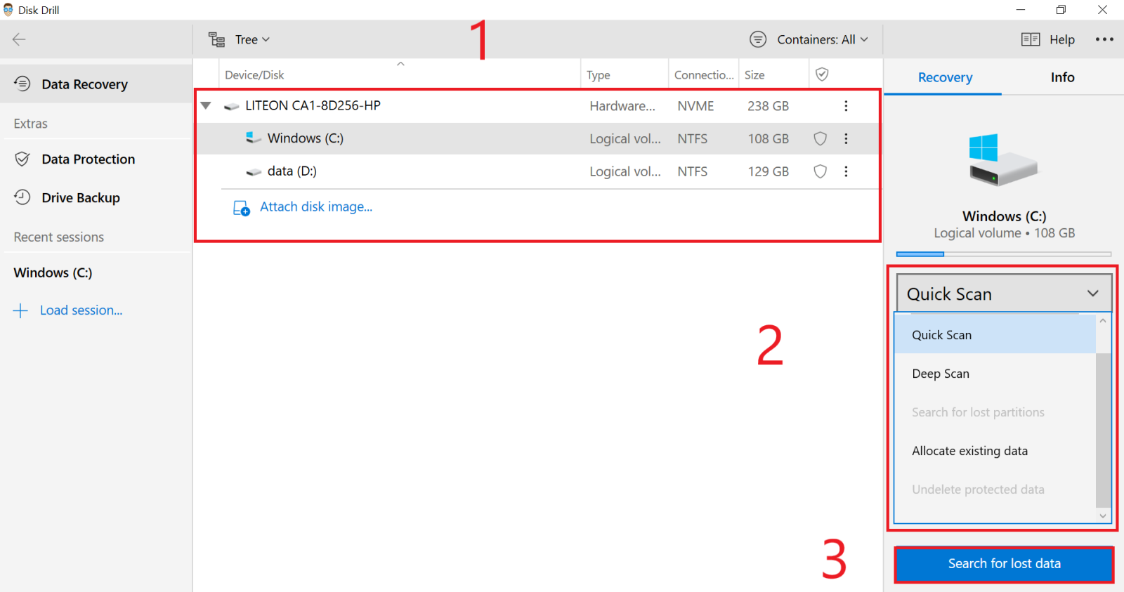 3. Hướng dẫn dụng phần mềm Disk Drill để khôi phục dữ liệu.