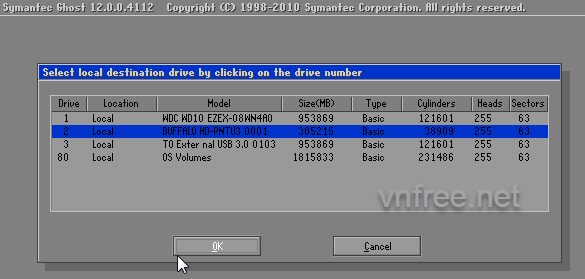 Hướng dẫn Ghost Partition to Partition bằng Norton Ghost để sao chép phân vùng
