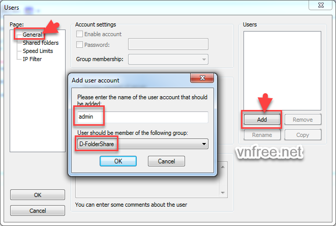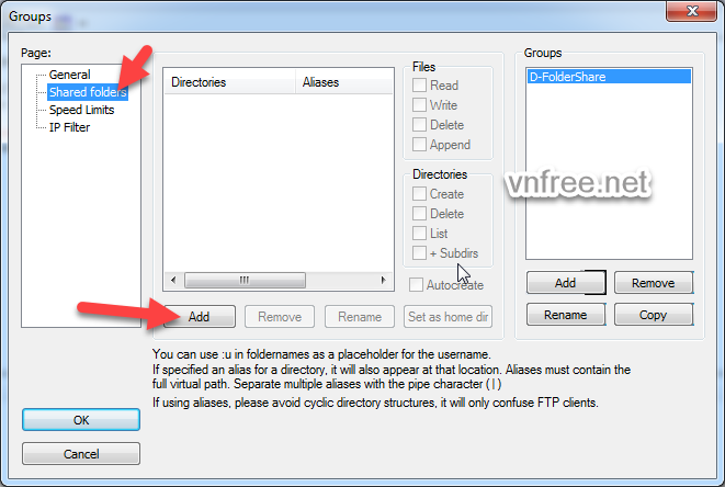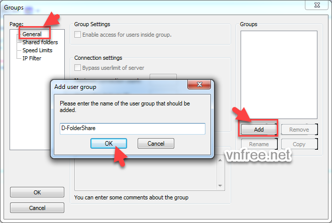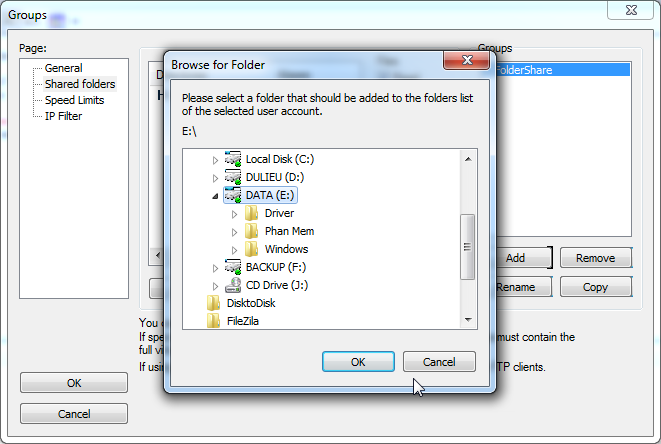 Browse hiện ra bạn chọn một Thư mục. Thư mục này sẽ được gán với nhóm vừa tạo trước đó, sau này các
