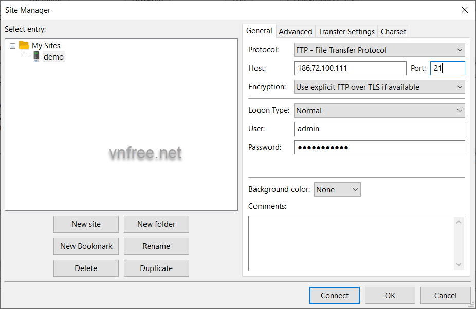 File > Site Manager > Chọn Sile của bạn > Transfer Settings > Active