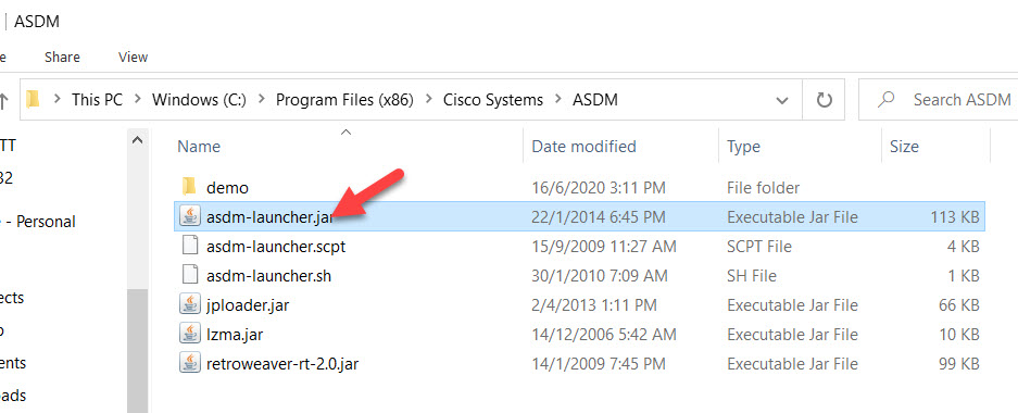 C:\Program Files (x86)\Cisco Systems\ASDM chạy file