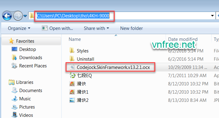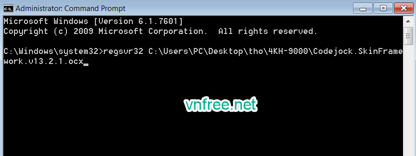 regsvr32 C:\Users\PC\Desktop\tho\Codejock.SkinFramework.v13.2.1.ocx