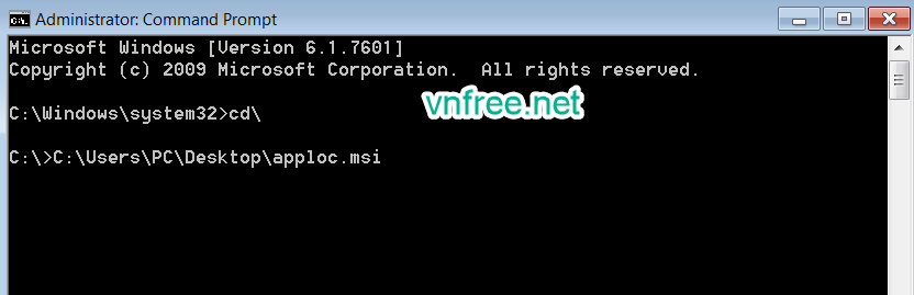Command prompt, vì cài bằng click đúp chuột thường báo lỗi '