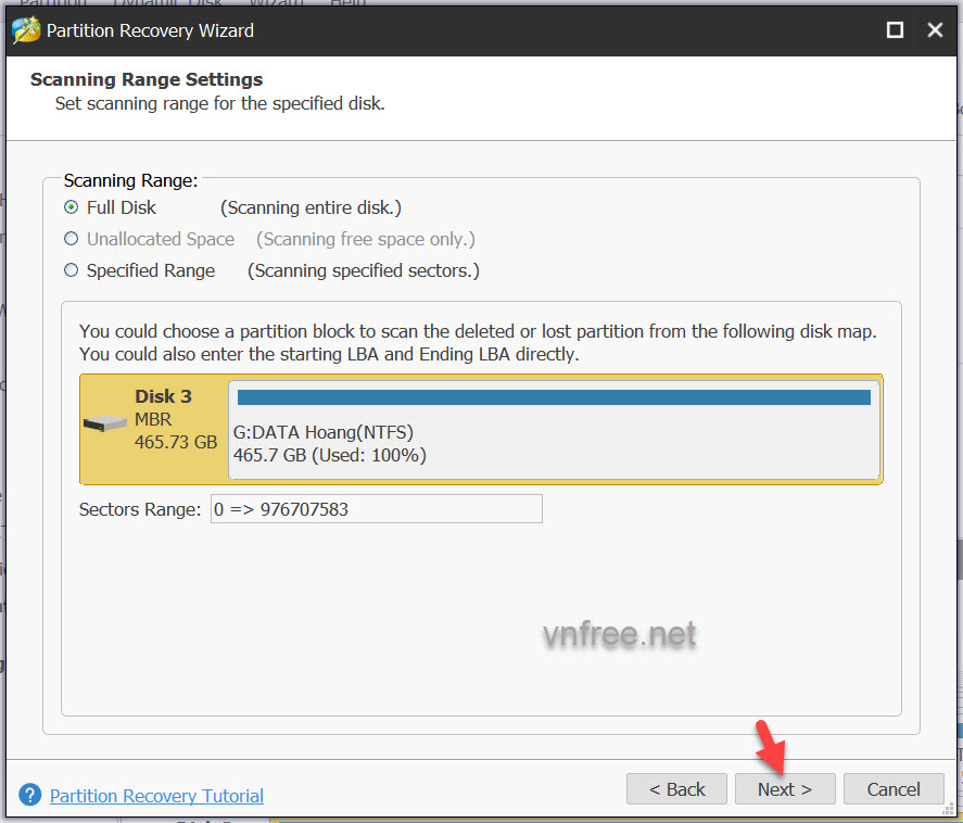 Next. Phần mềm sẽ tiến hành tìm và khôi phục dữ liệu đã mất trong ổ cứng, thời gian chờ đợi tùy vào lựa chọn quét của bạn và dữ liệu có trong ổ của bạn nhiều hay ít. Chúc bạn thành công.