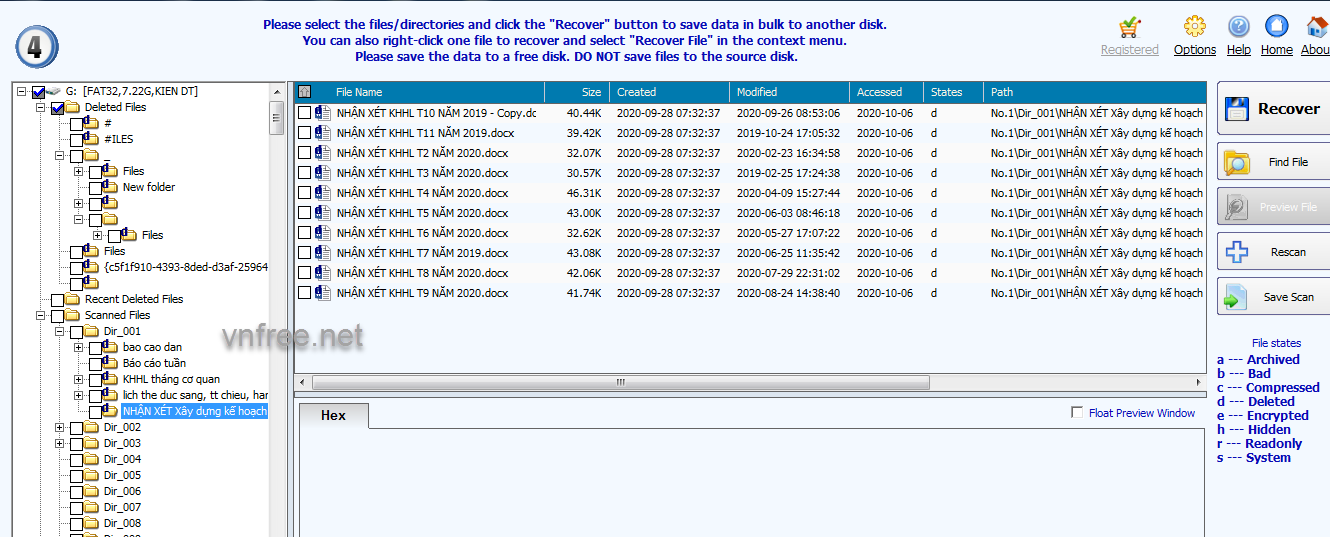 - Hình 4: Phần mềm sẽ tiến hành tìm lại dữ liệu, sau khi chạy xong kết quả hiển thị như hình 4 phía dưới