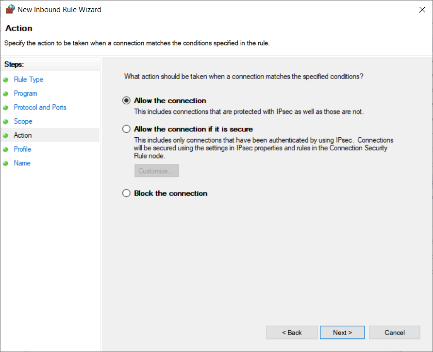 Allow the connection => Next