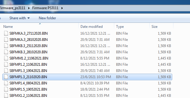 firmware_ps3111 tìm đúng phiên bản fw của bạn. ở đây của mình là SBFMP1.3_21102020 (21102020 là năm phiên bản)