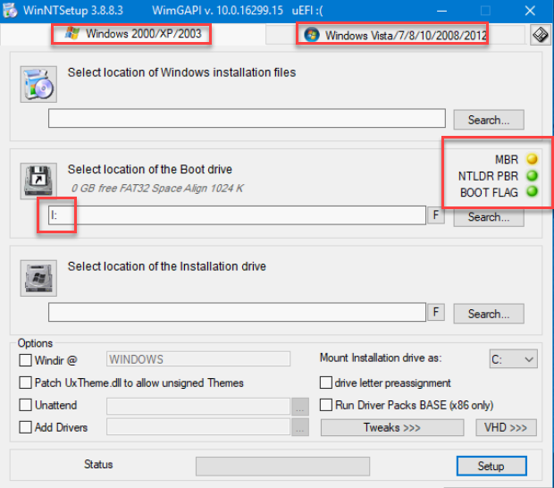 Lưu Ý: Khi bạn cài windows hoặc ghost xong trong Mini windows thì nên dùng WinNTSetup để kiểm tra MBR, PBR lại xem có bị thiếu không nhé. Mình gặp một số trường hợp ghost xong bị thiếu nên khi khởi động lại để tiến hành cài đặt thì không được.