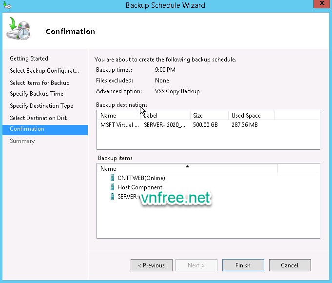 - Bước 14: Đến đây là đã xong việc thiết lập Windows Server Backup, nếu bạn muốn tùy chình lại thời gian chạy backup thì mở