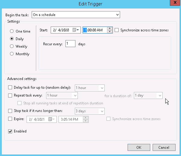 + Once a day: lịch biểu chạy 1 lần backup trong 1 ngày