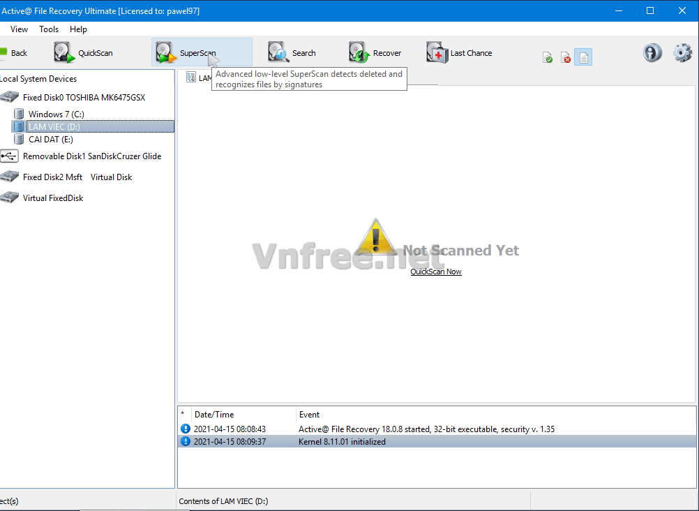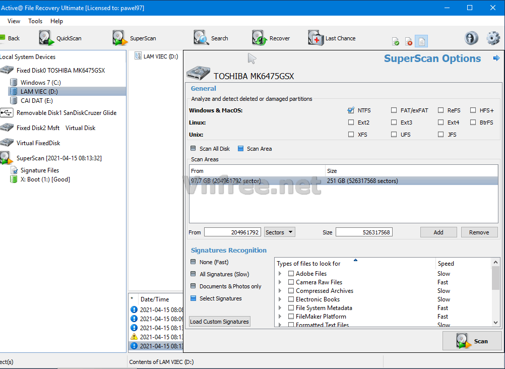 Lấy lại dữ liệu trên ổ cứng đã bị format bằng phần mềm Active@ File Recovery