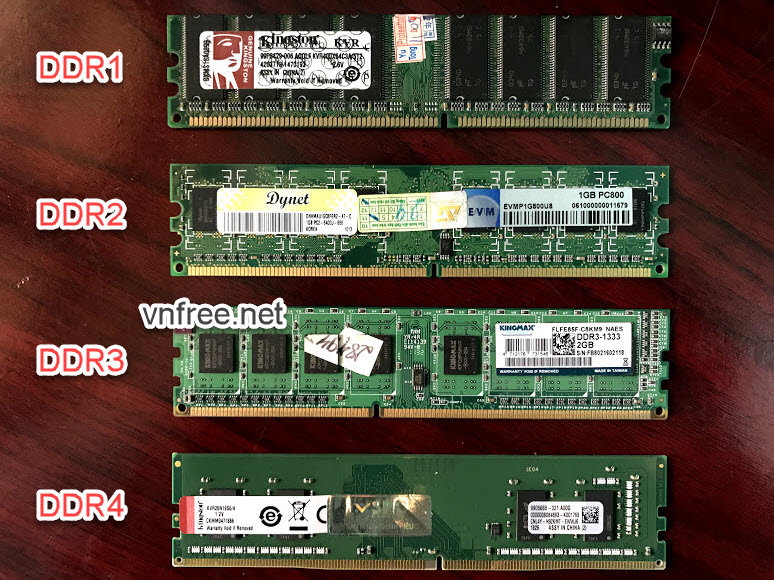 SDRAM ( Synchronous Dynamic Random Access Memory ) hiện nay có 4 loại chính là DDR1, DDR2, DDR3, DDR4