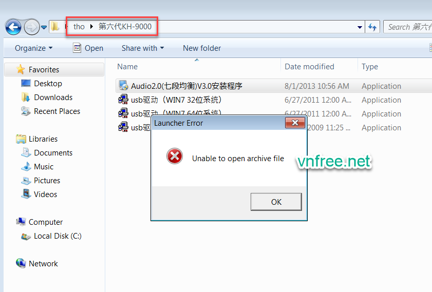 Sửa lỗi không chạy được file đuôi exe, lỗi unable to open archive file