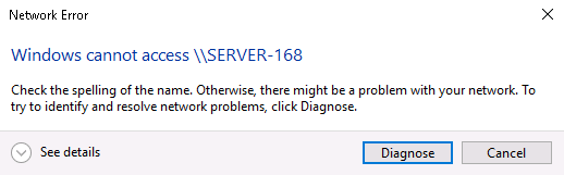Windows Cannot Access \\SERVER-168 thì bạn xem lại bước bật