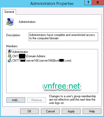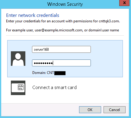 SERVER-168\administrator . Password sẽ là mật khẩu tài khoản