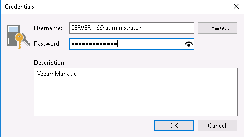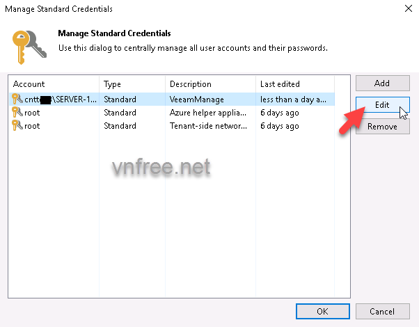 Thêm tài khoản quản trị Manage Credentials để khởi tạo kết nối trong Veeam & Replication