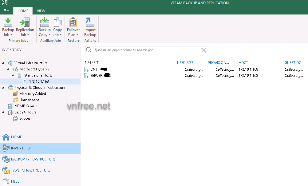 - Như vậy đến đây việc thêm Server Hyper-V vào Veeam đã thành công, lúc này bạn chuyển qua máy chủ Hyper V => vào mục