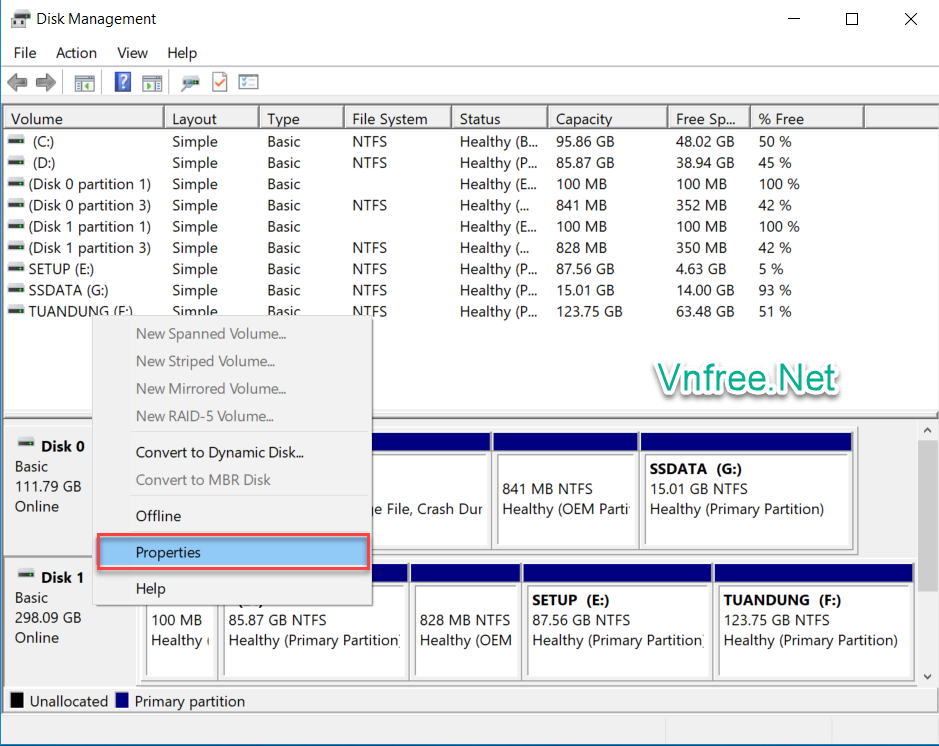 B2: Chọn ổ cứng cần kiểm tra, nhấp chuột phải vào và chọn Properties