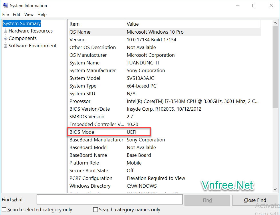 B2: Trong cửa sổ này các bạn sẽ nhìn thấy phần BIOS Mode, nếu là UEFI thì máy của bạn đang dùng chuẩn UEFI, nếu là Legacy thì máy của bạn sử dụng chuẩn Legacy.